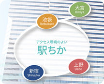 新宿本院だけでなく、池袋・大宮・上野など、ご自宅や職場近くの分院でも受診できます。全院駅ちかです。