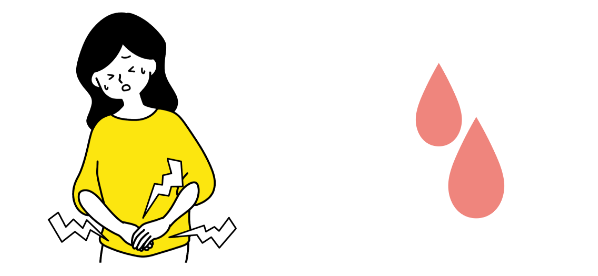 痛み・出血 2剤目服用後に、生理痛様の腹痛と出血が生じる