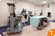 手術用具・機材①やベッドの位置・スタッフの通り道など細かい配置まで配慮しながら、医師や看護師が動きやすい環境づくりを心がけております。環境が整うことで、手術の進行がスムーズになります。患者さまのお身体への負担を和らげるために準備の段階からスタッフ全員が心がけています。