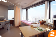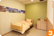 設備は、最新の設備②を導入しています。また、患者さまの肌に触れるシーツやタオル③は徹底した衛生管理を行い、快適さを演出できるよう心がけています。