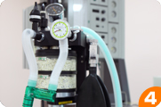 手術を受ける患者さまには全例酸素導入を行い、呼吸管理として全身麻酔器モニター④による徹底した安全監視システムで臨みます。