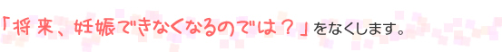 以上のように多数の医師が交代で毎日診療にあたることで、事故を未然に防ぎ、将来妊娠できないかもしれないという不安をなくす努力をしています。
